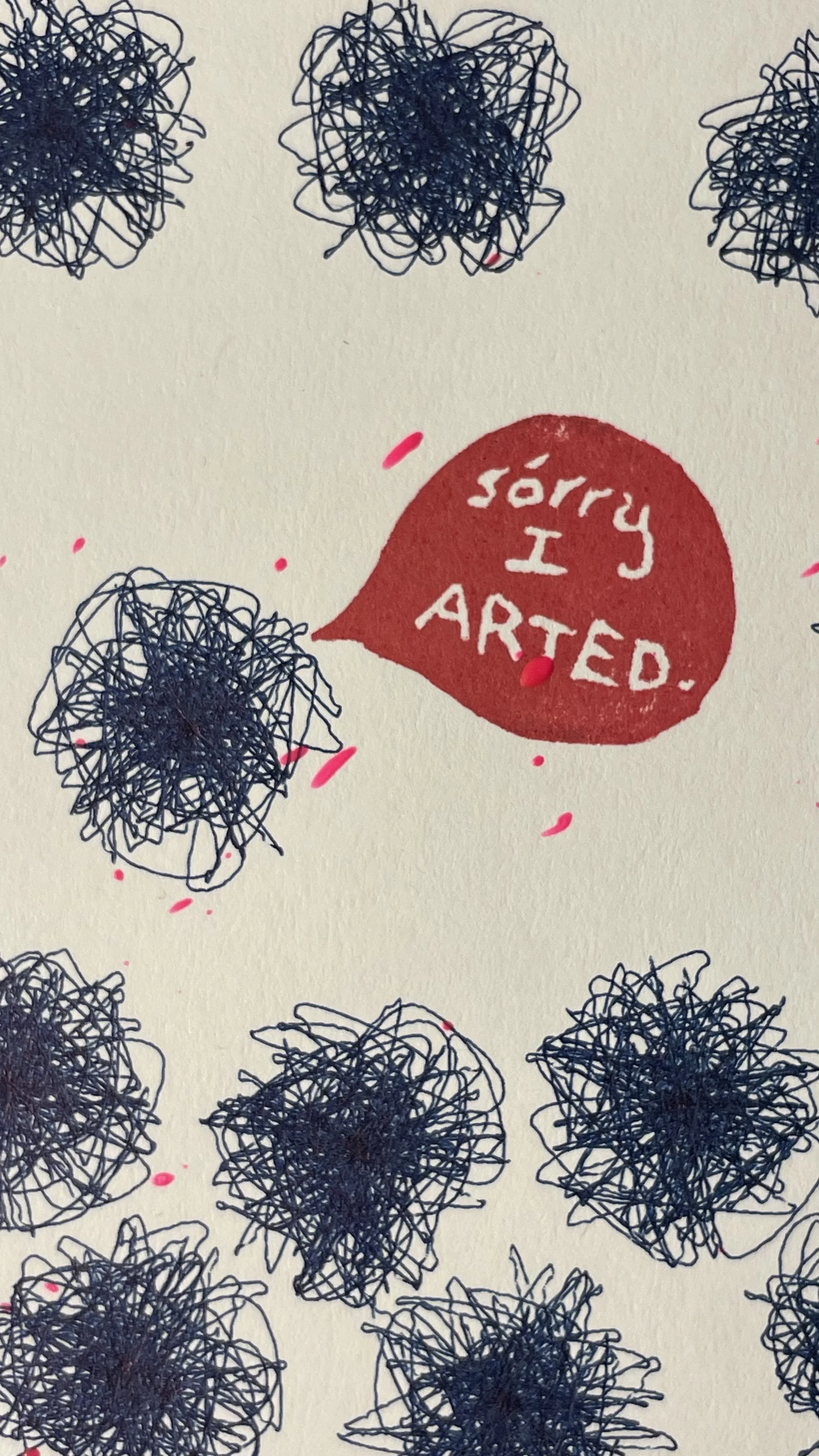 “You Monster” — mixed media performance piece (plotter, ink, paint, paper)